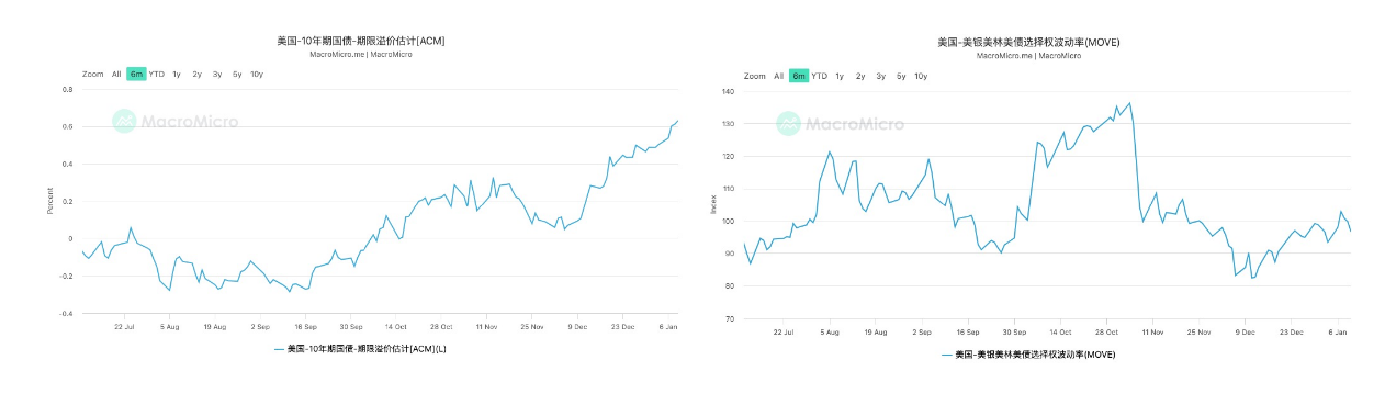 第二個是美林美債選擇權波動率,也就是 MOVE 指標,可以看到在最近的一段時間內,波動率並沒有出現劇烈的變化,通常情況下,MOVE 對短端利率的隱含波動率反應更敏感,因為所佔權重更大。