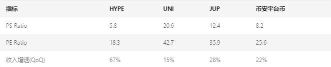 HYPE 當前 67 億美元的流通市值,對應 PS 5.8 處於行業低位,考慮到其收入增速是同行 3-4 倍,PEG 比率僅為 0.27,總體來看確實低估。