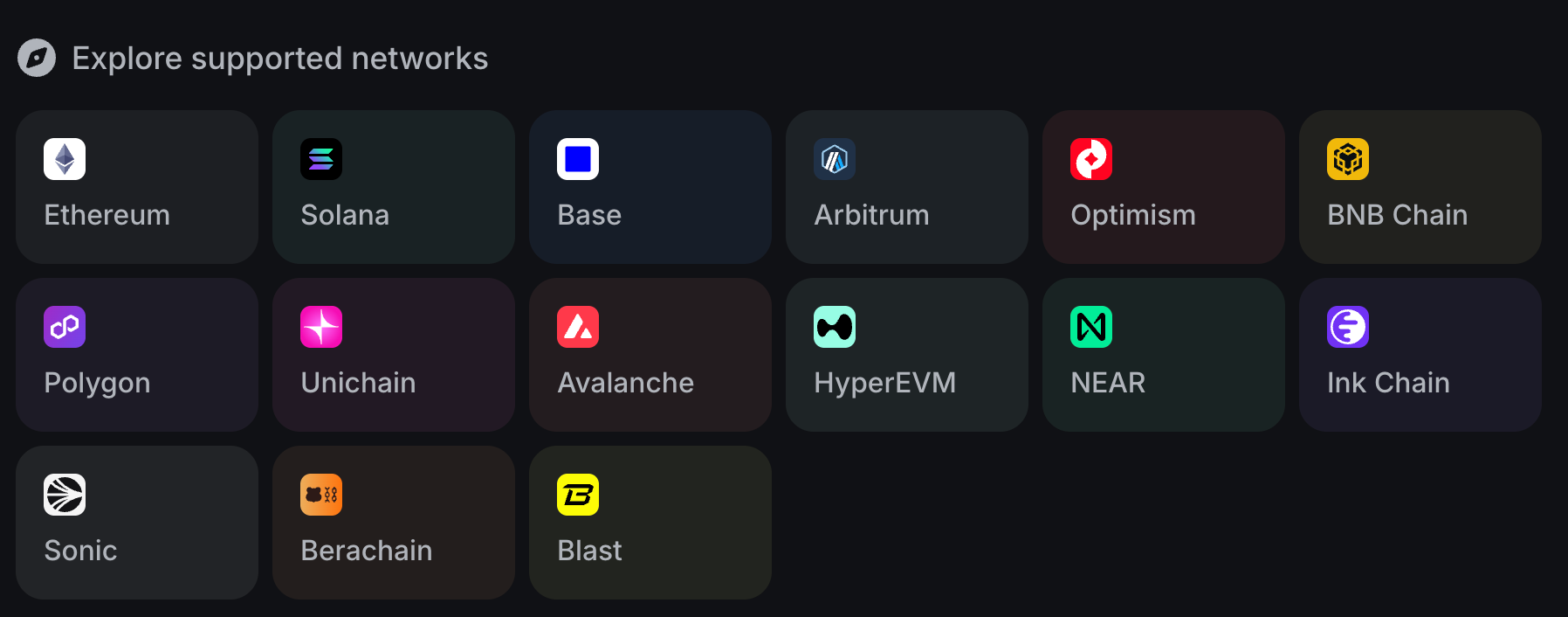 截至發文,Infinex 已集成了以太坊、Solana、Base 等 15 條網路,所提供的 DeFi 服務已涵蓋跨鏈交易(Swidge)、永續合約(Perp)、流動性質押及其他生息服務(Earn)等多個類別。
