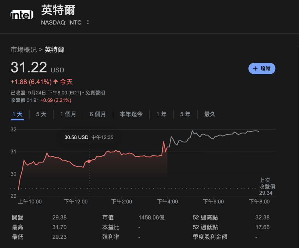 如今 Intel 轉身向 Apple 求援,不僅盼引入現金,更需要一個重量級盟友的信任背書,而消息一出後,引發intel股價大漲6.42%,這已是美國政府介入後,第三個實體投入救援intel的具體行動,而股價也自去年低點起上漲67%。
