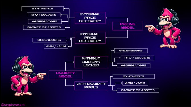 這是一個龐大的類別,包含了幾個之間存在細微差別的子模型。一個共同的特點是價格發現是在協議外部進行的。它們使用類似於 @PythNetwork 和 @chainlink 的 Oracle 提供商或自定義價格源。
