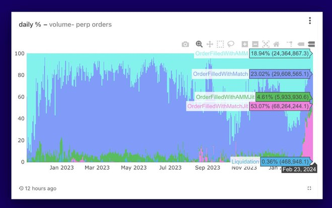 該模型的先驅之一是 @DriftProtocol,他們的 V2 版本於 2022 年底上線,並引入了前面提到的 JIT 流動性。