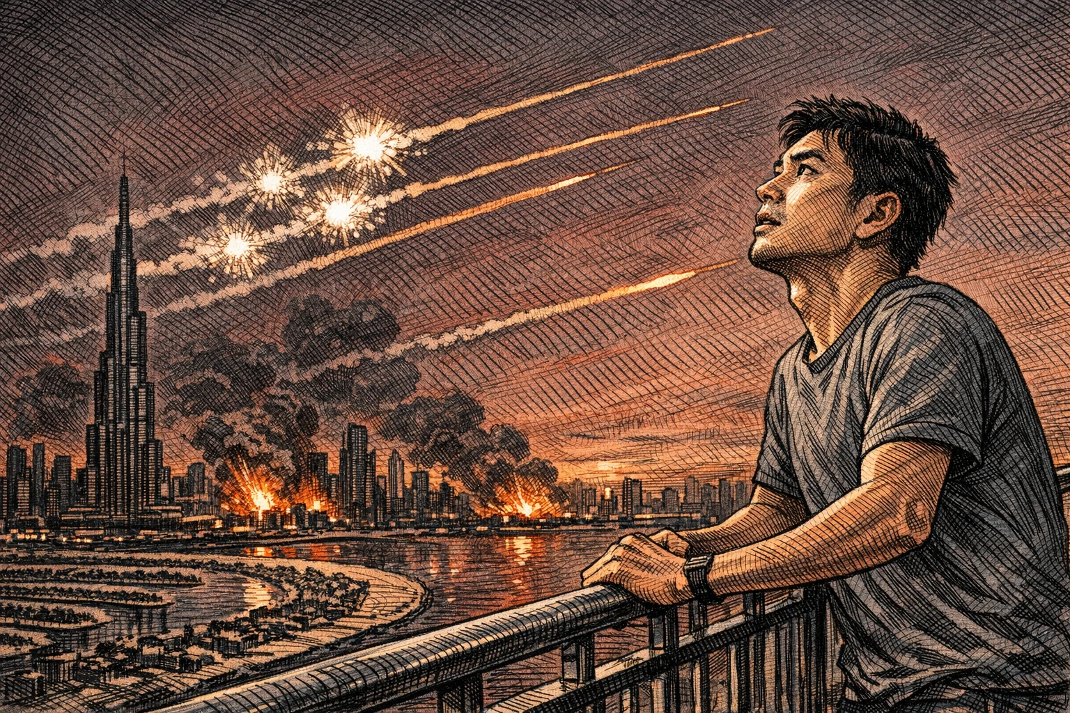 他有個做房產中介的朋友,剛聊過。好幾個原本要來杜拜看房的客戶,現在過不來了。「放假肯定有影響。」但他覺得是短期的。真正的問題在於外面的人怎麼想,飛機飛過來,萬一導彈也飛呢?來了之後飛不回去,怎麼辦?
