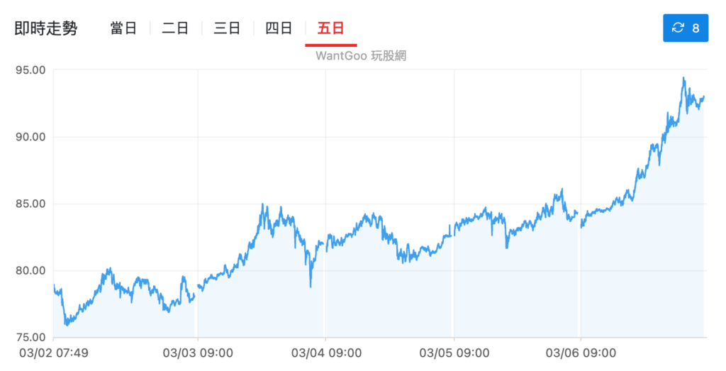 美國原油本週錄得自 1982 年以來最大單週漲幅,飆升 34.5%。布倫特原油站上 93 美元。這個數字之所以重要,是因為它直接影響聯準會的利率路徑。如果油價持續高企,通膨預期就會重新升溫,原本市場寄望的 6 月降息窗口將被關閉。