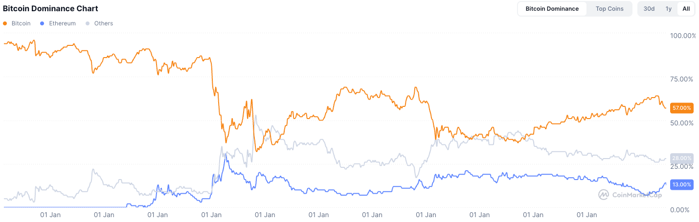 二是市場上的大多數散戶可能根本沒有持有比特幣或以太坊,而是在過去兩年中被山寨幣深深套牢,沒有多餘的流動性。