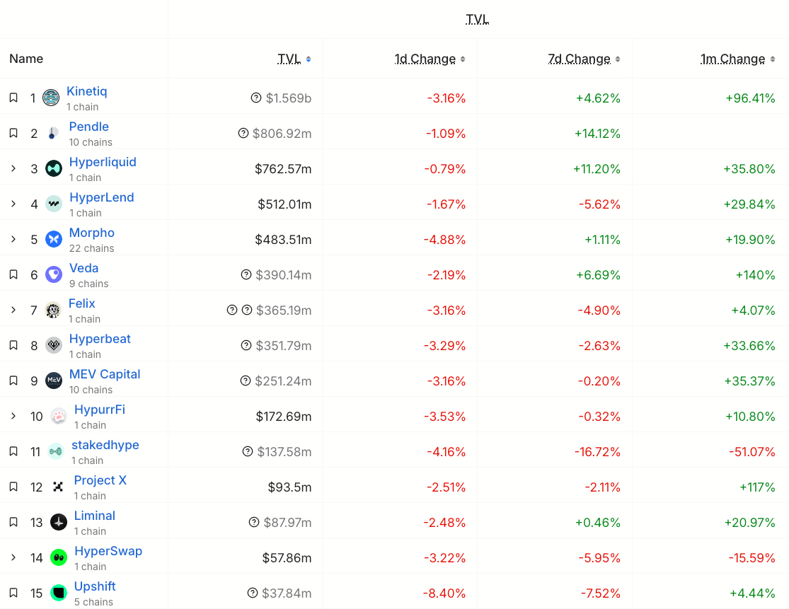 資金將更多流向那些有基本面和 PMF 的專案,這些資產的漲幅可能有限,但相對更穩健,確定性高。例如,Uniswap 和 Aave 這樣的 DeFi 藍籌,即便在市場低迷期,仍然維持著較好的韌性;Ethena、Hyperliquid 和 Pendle 則作為新星在這個週期脫穎而出。