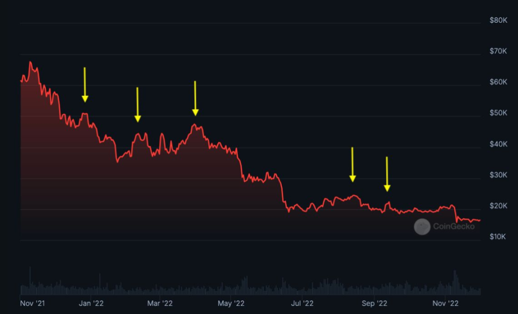 2022 年市場經歷了幾次技術性反彈,但沒有趨勢逆轉。理想情況下,你希望看到前方有重大催化劑,同時閒置資本猶豫是否抄底。