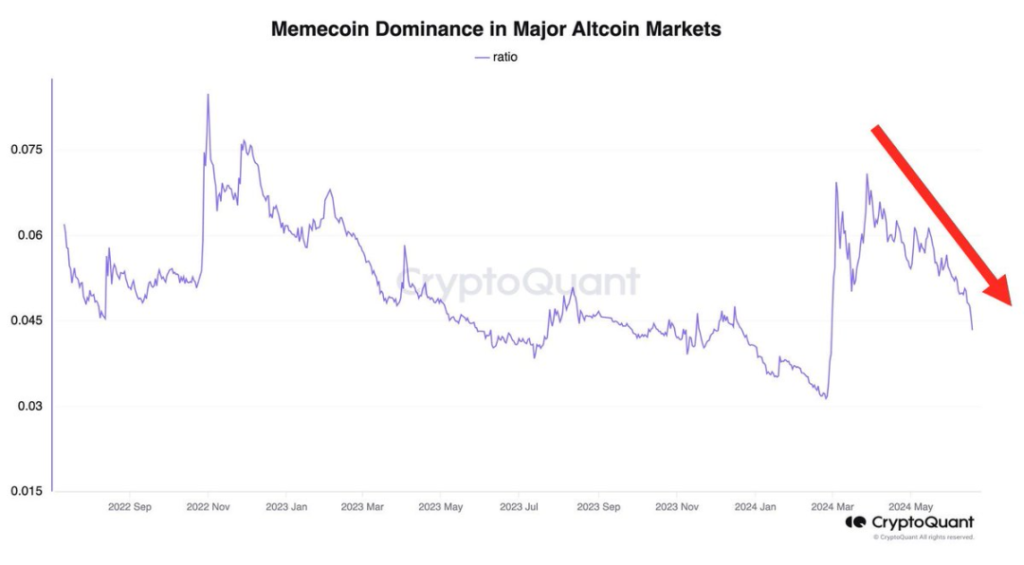 最大的狂熱可能已經過去。這一週期可能只是曇花一現。證據:memecoin 在 2024 年第一季度達到頂峰,此後呈下降趨勢。