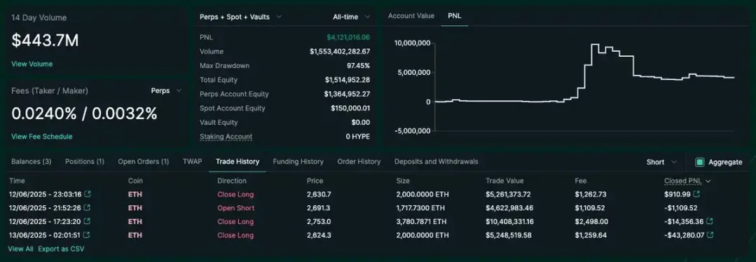 我找到了 James Wynn 使用的 Hyperliquid 帳戶,他一直在跟自己對賭。