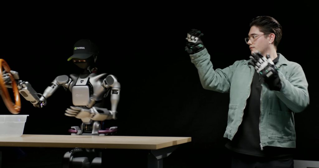 這或許代表,少數的高階AI技術管理員,可以透過一鍵方式,輕鬆使其建立的機器人產線團隊,進行複雜的生產操作。有趣的是,Nvidia也展示了人類將工作交接給機器人的示意圖。