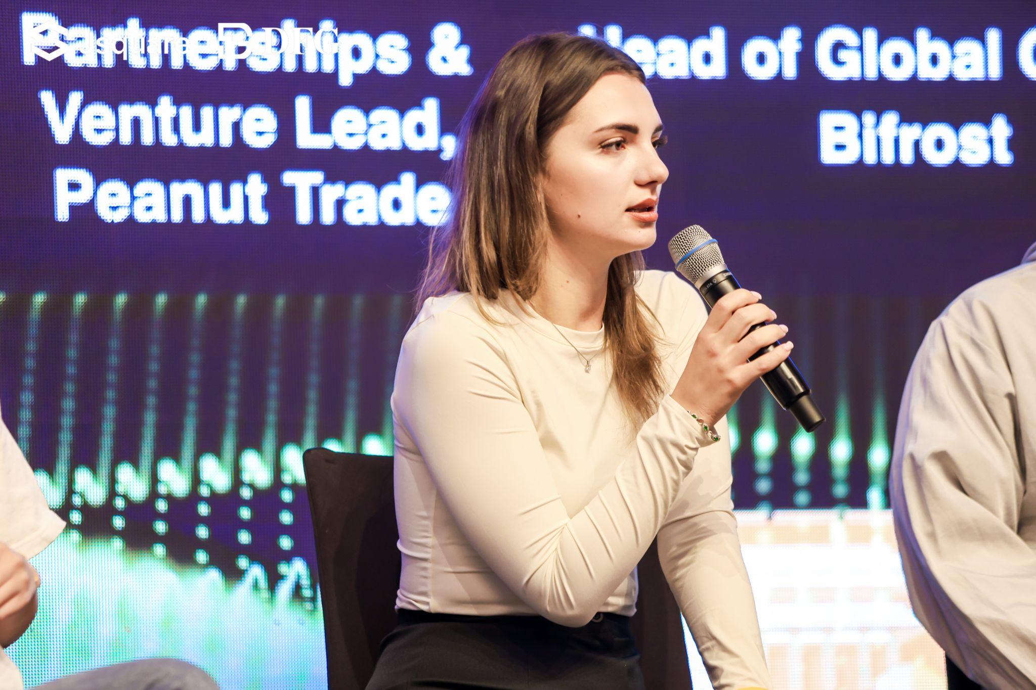 在「DeFi 遇見 AI——收益、流動性與智慧的新前沿」討論中,Peanut Trade 的 Anastasiia Lorenzen 分享了 AI 增強型流動性管理與鏈上做市的經驗,同時提醒潛在風險。