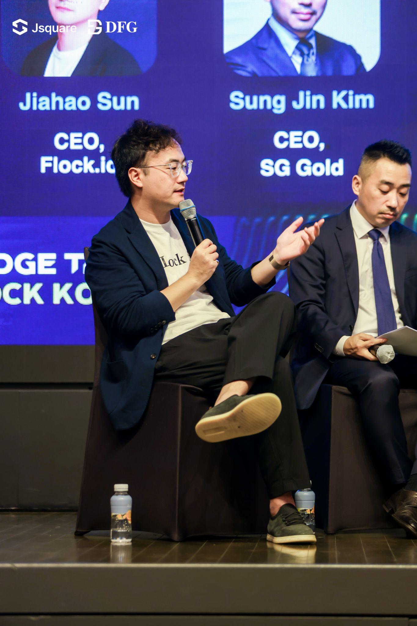 在「韓國走向世界:連接 Web3 社群、文化與資本」討論中,Echobit 商務總監全惠元主持,Flock.io CEO Jiahao Sun 強調去中心化數據網路的發展及韓國在跨境合作中的作用。
