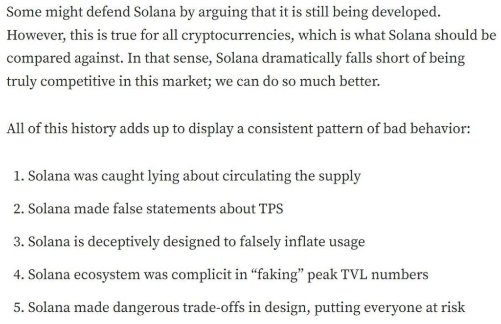 詐欺和謊言是更難讓人容忍的。正如我在之前的批評中所說的,多年來 Solana 團隊存在一系列不良行為。不過,從那以後,Solana 團隊在溝通的誠實性和專業性方面確實有了很大改進。