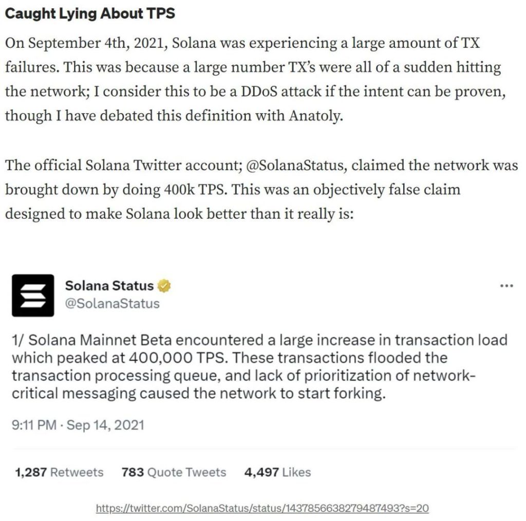 自那以後,Solana 在對外溝通時已經清理了這些不實資訊,不再圍繞 TPS 信口開河;實際上,Solana 的領導層如今在對外溝通時誠實多了。