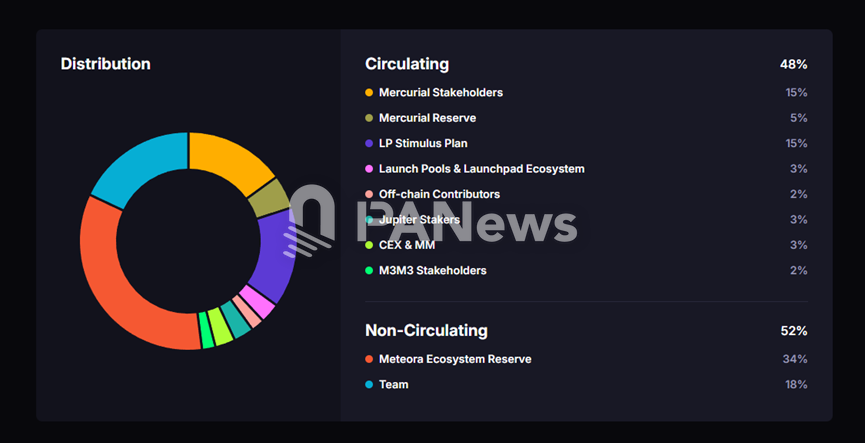 MET 代幣總供應量為 10 億枚。在 TGE 當天,占總供應量 48%(即 4.8 億枚)的代幣被一次性完全解鎖並進入流通。團隊聲稱,此舉是「故意為之」,旨在消除「人為的稀缺性」,實現「真實的市場價格發現」。