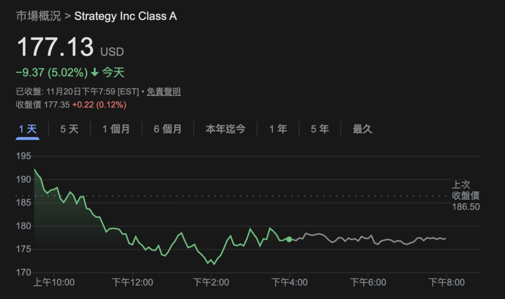 若方案於 2026 年 1 月 15 日定案,Strategy 將在 2 月被移出 MSCI 旗下一系列指數,屆時被動基金勢必跟進賣股。近期在比特幣疲軟的背景下,微策略股價昨日下跌 5%、進一個月下挫超 40%。