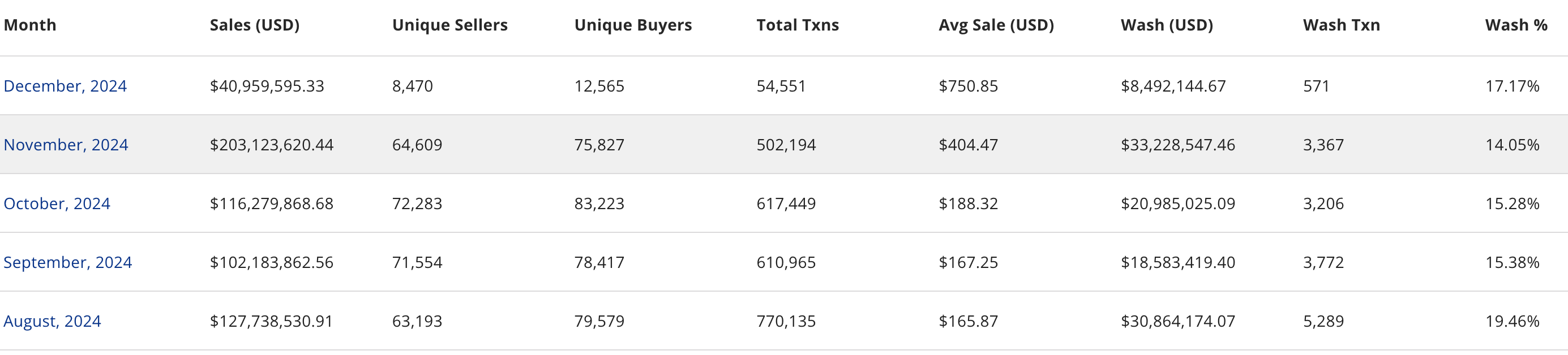 尤其是 12 月 1 日,NFT 總交易量突破 4,200 萬美元,創下今年第二高的單日交易量,僅次於今年 3 月 4 日的 5,330 萬美元。