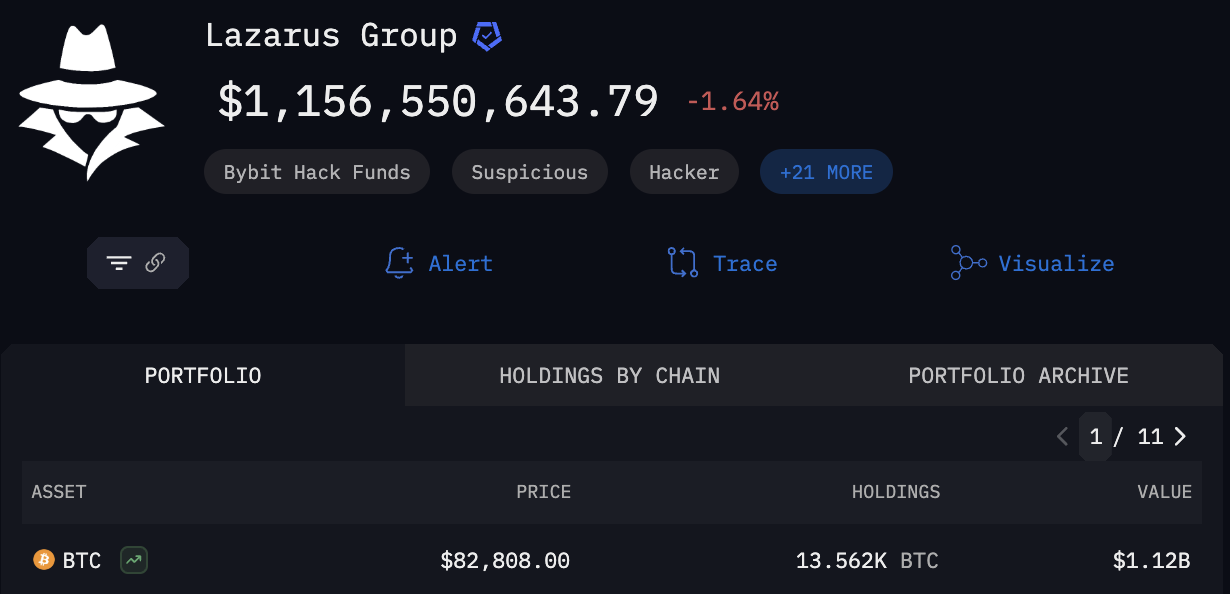 此次駭客行動使北韓的比特幣儲備大幅增加,躍升為全球第三大比特幣持有國。據 Arkham 數據,Lazarus Group 目前持有 13,562 個比特幣,價值約 11.2 億美元。