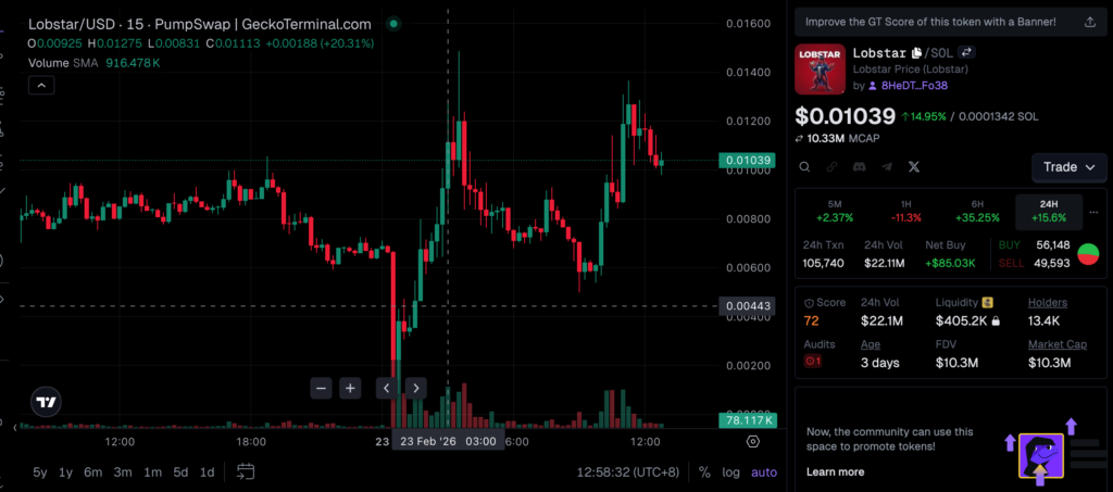 鏈上數據顯示,Treasure David 隨後迅速拋售了部分代幣,套現約 4 萬美元。諷刺的是,這起烏龍事件反而讓 LOBSTAR 代幣的知名度暴增,幣價從事發前的 0.0038 美元飆漲至 0.011 美元,漲幅高達約 190%。如果 Treasure David 選擇繼續持有而非急著拋售,獲利將遠不止 4 萬美元。