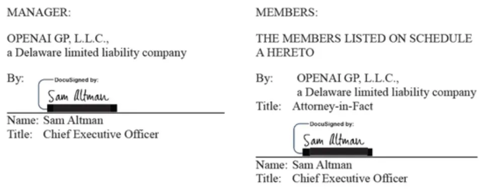 但他隨後就被打臉,外媒扒出的更多內部協議顯示,OpenAI 幾乎擁有所有權利,可以任意將股權從前員工那裡收回,或阻止他們出售股權。而簽署這些檔案的,正是 Sam Altman,簽署日期為 2023 年 4 月 10 日。