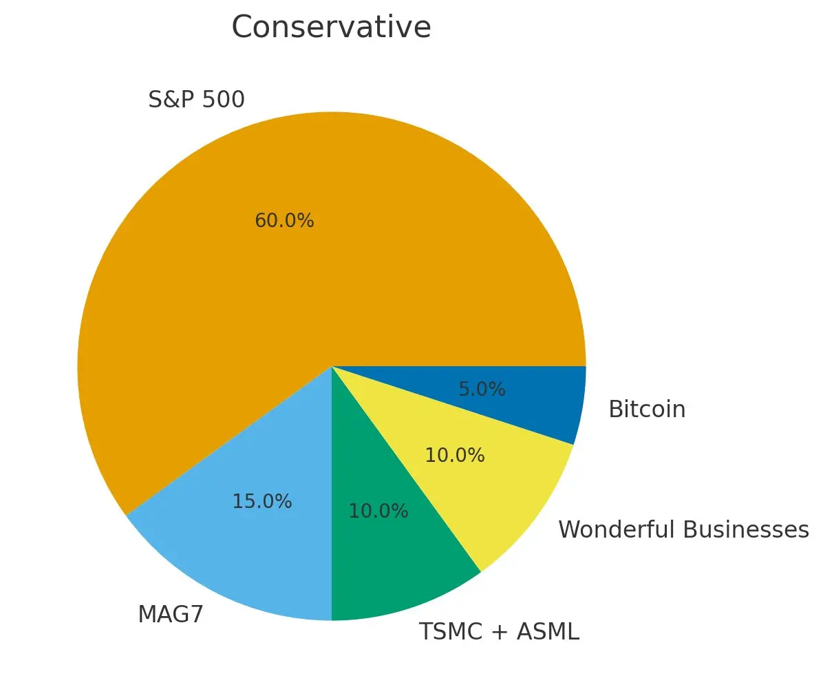 - 5% 比特幣:小倉位配置,以獲取不對稱的上漲潛力,同時不扭曲整體波動性。