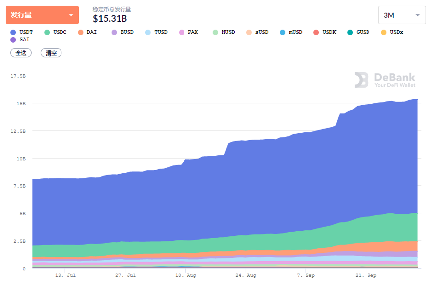 以太坊上的穩定幣流通量已經達到 150 億美元,ERC20 USDT 的發行量也成功超過 100 億美元。