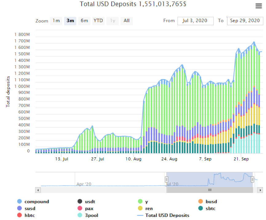 從 8 月份治理代幣 CRV 發放以來,CRV 的價格從一開始的 30 美元跌至現在的不到 1 美元,具有代表性的 Y 池的年化收益也已經降至 10%,但這並沒有影響到 Curve 的使用體驗。