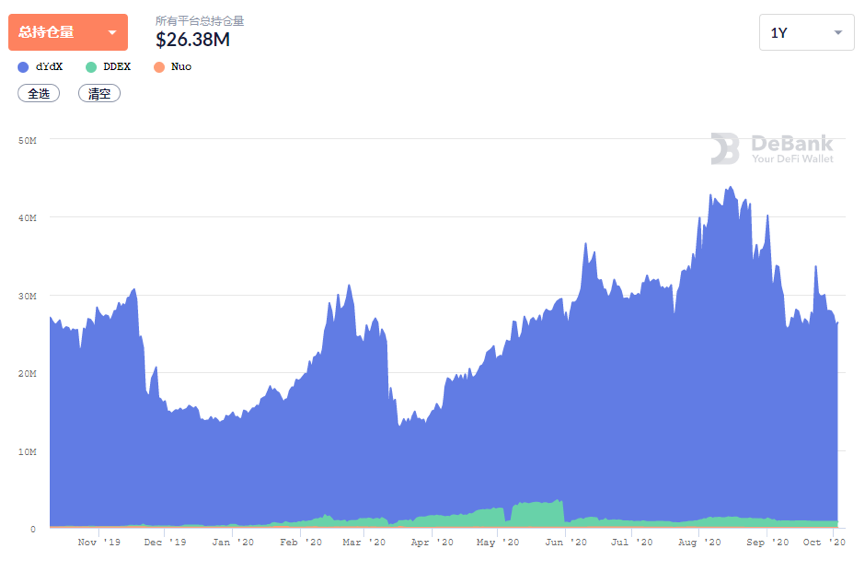 去中心化保證金交易在最近幾個月的牛市中都沒有迎來大規模的增長。dYdX 是去中心化槓桿交易平台的代表,也是少有的至今仍未發幣的知名項目之一。與一個月前相比,dYdX 的持倉量下降 24%。目前多頭持倉量 2,359 萬美元,空頭持倉量 201 萬美元。