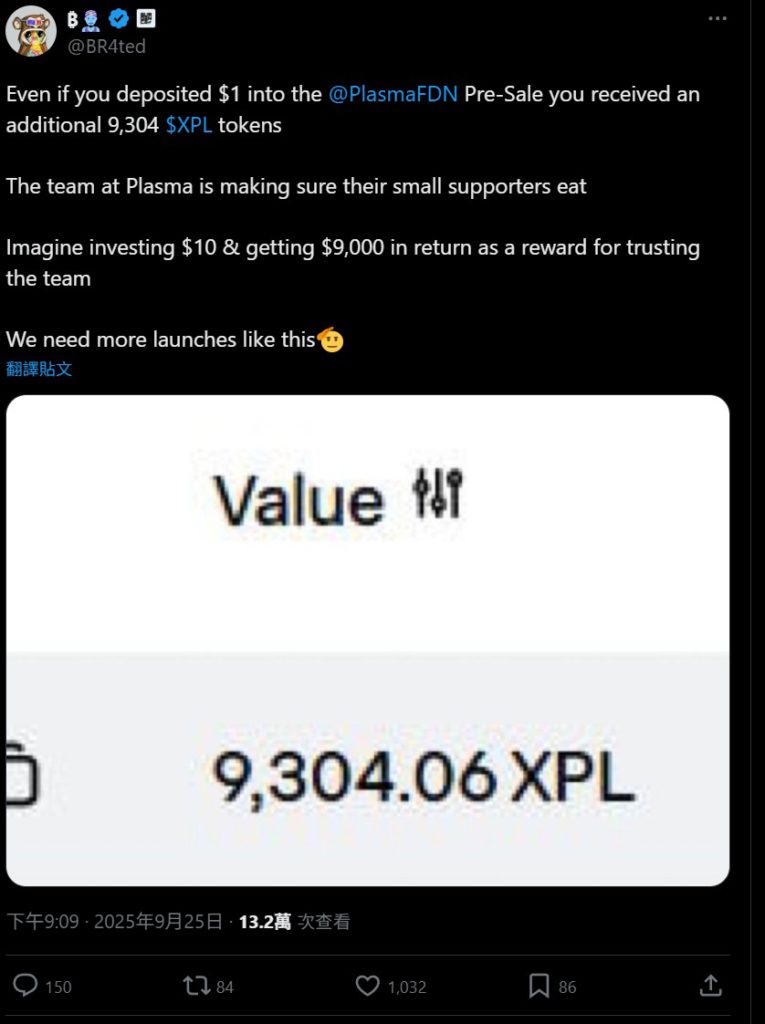 社群熱點是官方同時發行 2,500 萬枚 XPL ,平均灑向全部預存者,不論金額多寡,每人都拿到約 9,304 XPL 代幣,社群 FOMO 情緒飆升。