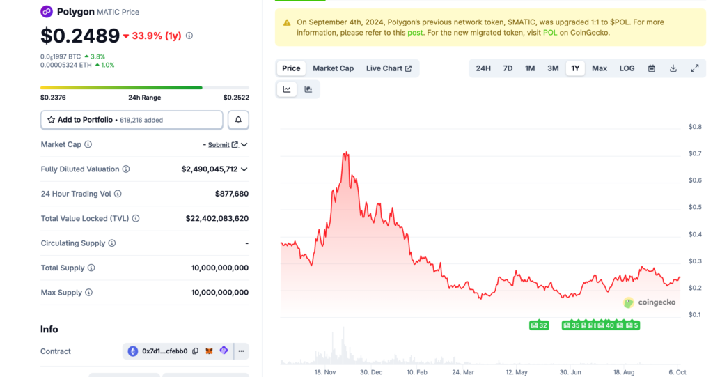 根據Cointelegraph 報導,在比特幣、以太坊領漲的市場裡,POL 卻連熊市低點都失守。2024 年 Polygon 把原生幣由 MATIC 轉換為 POL,同步導入每年 2% 通膨,用來補貼驗證者與生態補助。隨著新增供應量每年約 2 億枚,稀釋壓力漸增,價格持續滑落。Venturefounder 直言: