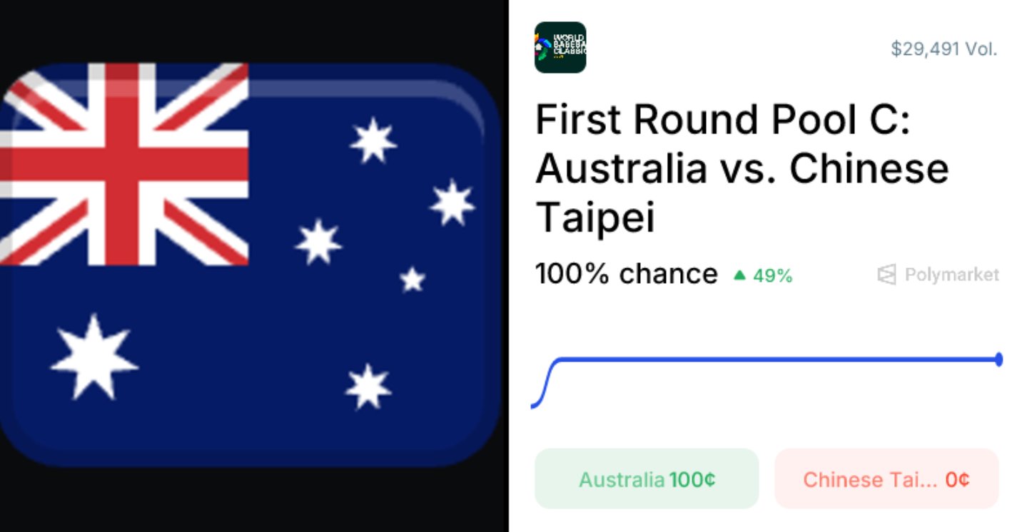 Polymarket盤前預測WBC澳洲會贏,台灣棒球迷上了一堂預測市場課