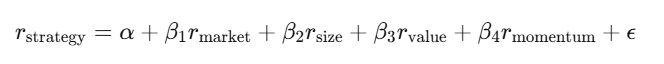 線性回歸 y=Xβ+ε 是金融業的主力工具。你把策略報酬對已知的風險因子做回歸,截距 α 就是你的超額報酬——那個無法被已知因子解釋的部分。