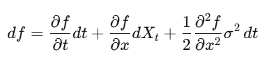 在普通微積分裡,你做泰勒展開,(dx)² 小到可以省略。但當 x 是隨機過程,(dW_t)² = dt 是一階項,你省略不了。Itô 引理:df = (∂f/∂t + μ∂f/∂x + ½σ²∂²f/∂x²)dt + σ∂f/∂x dW_t。把這個應用到選擇權價格,你就得到了 Black-Scholes。