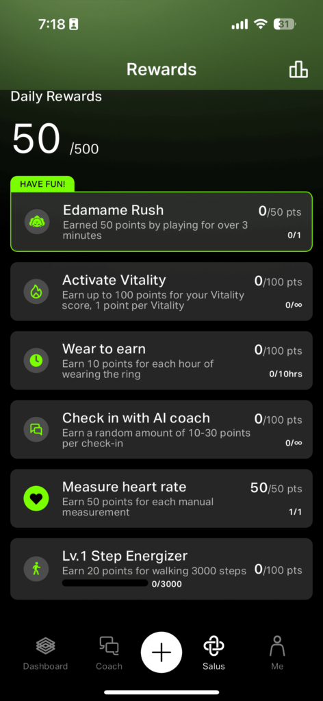 - 測量心率:每次測量可獲得50點,最多50點