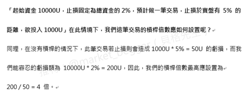 在此情境下,我們這筆交易的槓桿倍數應如何設置呢?