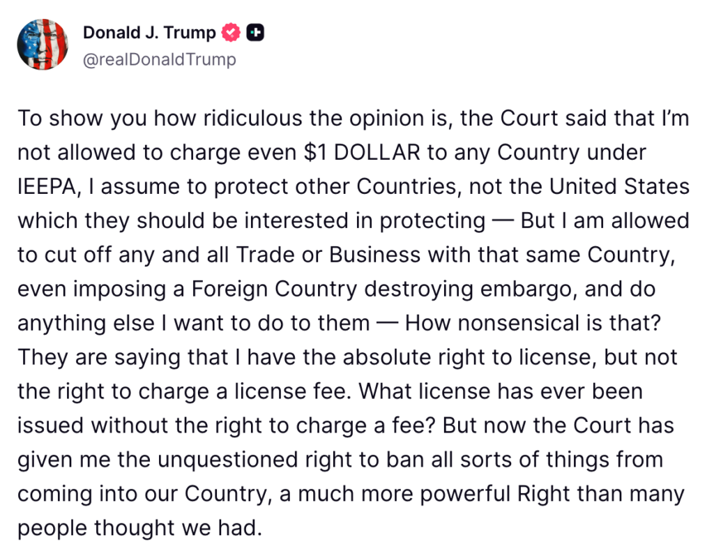 第三,最高法院打掉的是川普過去一年來最倚重的那把刀:用「國家緊急狀態」的名義繞過國會,對全球實施無差別關稅,其他法條雖然還可運用,但每一條都有各自的限制。