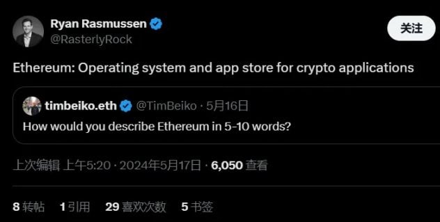 Ryan:事實上,這實際上是比特幣至上主義者對以太坊的常見批評,我覺得很有趣。他們說以太坊不斷改變其敘事。