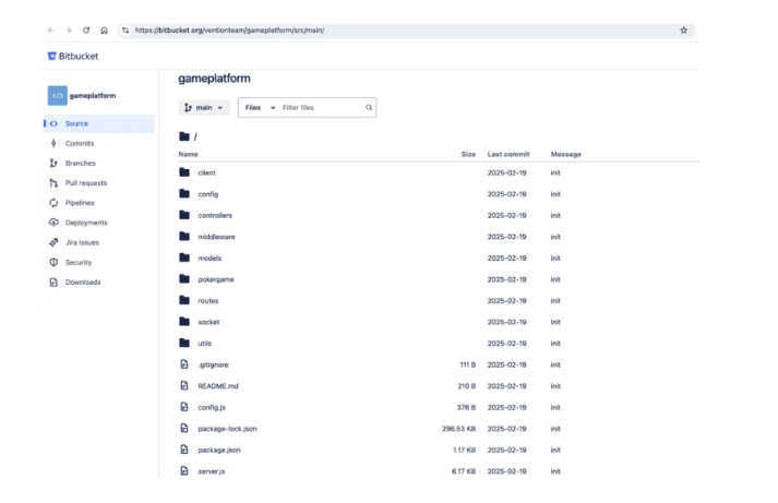剛開始招聘人員含糊其辭,然後開始給 Bruno 打電話,試圖傳達緊迫感和重要性,並立即提供了 repo 連結:https://bitbucket [.] org/ventionteam/gameplatform/src/main/。