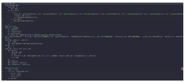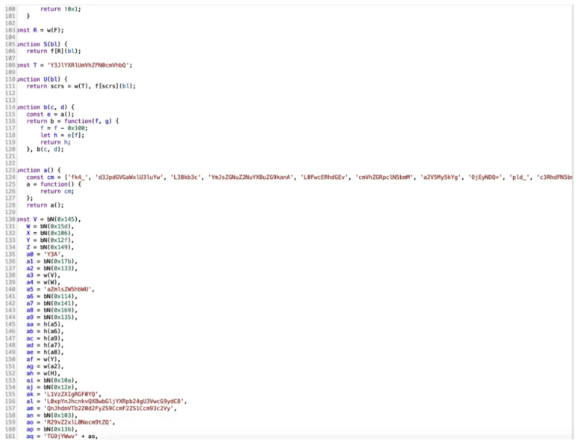 這是經過加密的程式碼,而且不止一層,base64 加密。