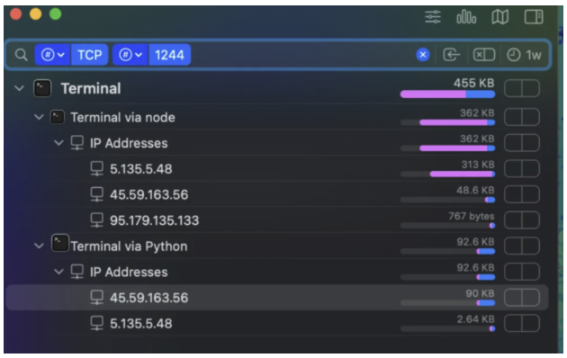 惡意請求:http://216.173.115 [.] 200:1244/s/bc7302f71ff3。有趣的是,這個惡意請求竟然繞過了 little snitch 的監控檢測。