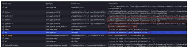 攻擊者會下載檔案並執行,兩個檔案分別是 test.js 和 .npl。