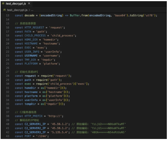 發現這個攻擊手法各種混淆,解密比較麻煩,我們直接通過 Hook 手法把 C2 連結抓出來: