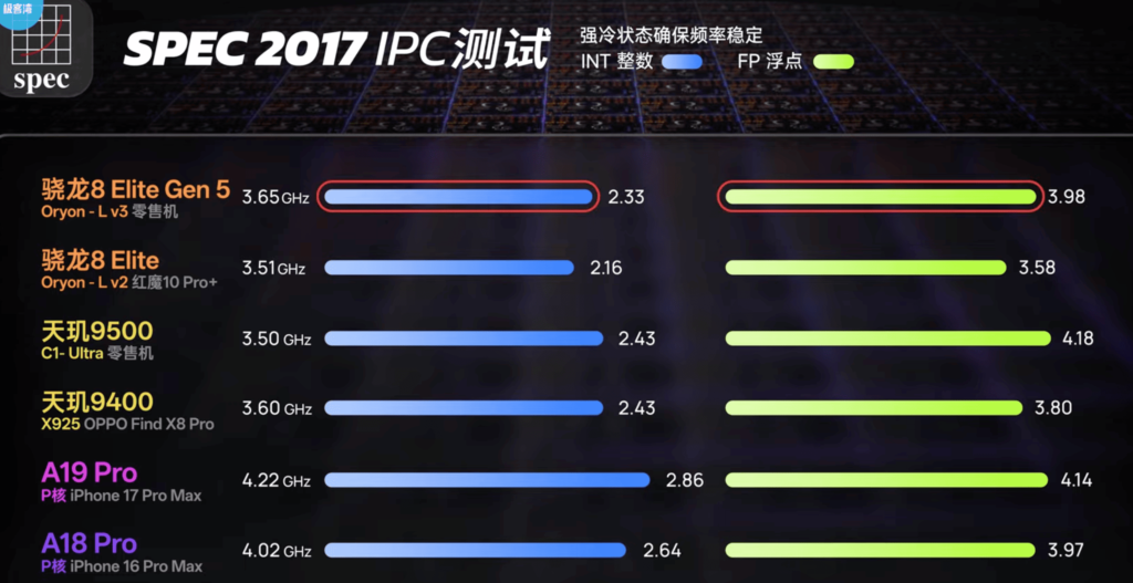 每到九月,行動晶片比拼如同 F1 起跑燈亮起,旗艦手機命脈隨之一併加速,今年看點落在高通驍龍 8 Elite Gen 5 (8L5) 與蘋果 A19 Pro 的正面對決,據極客灣實際測試數據顯示,8 Elite Gen 5 在許多層面全面碾壓 A19 Pro,為剛上市的 iPhone 17滅了一些威風。