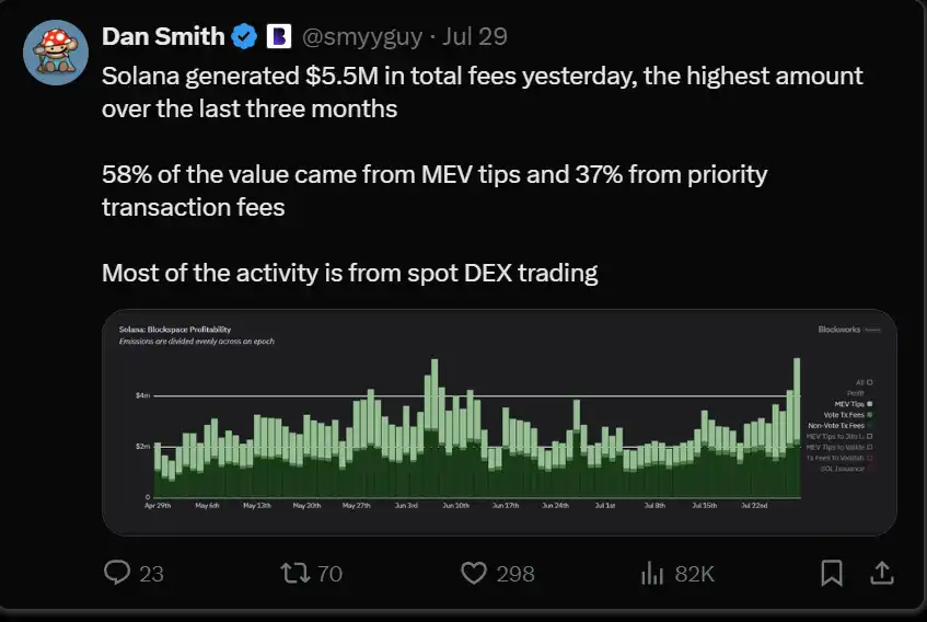 不過,確實存在一些明顯的扭曲激勵機制 —— 透過盡可能地將山寨幣活動引流到 SOL,這使得某些成熟的個體能夠繼續從 MEV 中獲利,以及在這些山寨幣上進行內幕交易,並從 SOL 的價格上漲中受益。