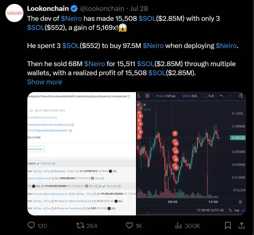 在 X 上進行快速搜尋也顯示出猖獗的內線交易以及開發者在買家身上拋售代幣的證據: