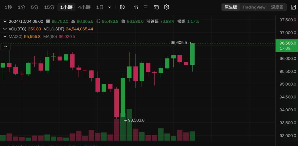 不過在市場確認此次戒嚴更多是政治上的鬥爭後,市場湧入抄底資金。撰稿當下比特幣已經站回 96500 美元之上,近 24 小時上漲 0.84%。