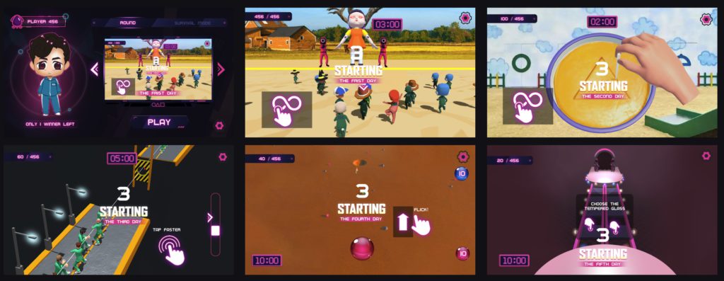 Squid Game 遊戲一共有六輪,只有每場競賽的獲勝者才可以進入下一場比賽,每一輪的入場費在開發者 (10%) 和獎勵池 (90%) 之間分配