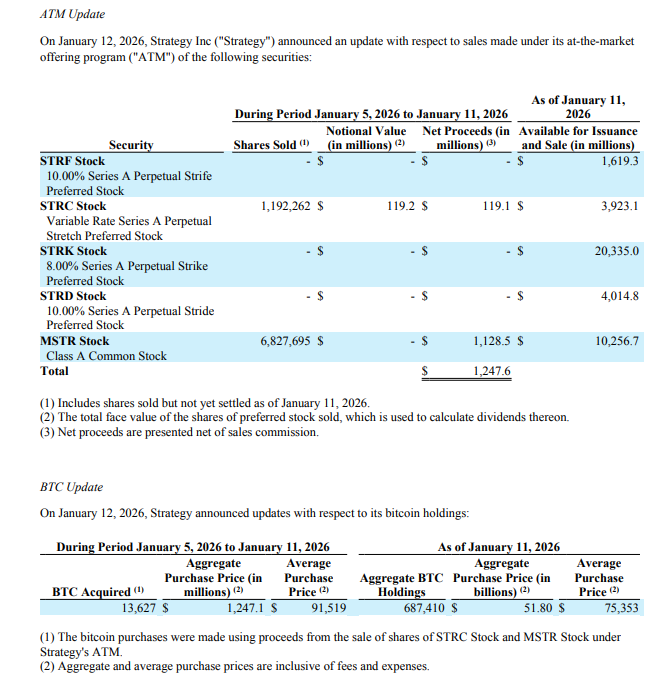具體來看,在 2026 年 1 月 5 日至 1 月 11 日 期間,Strategy 出售了: