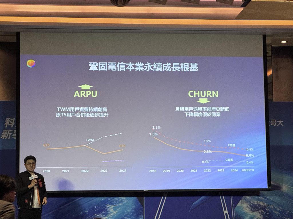 個人用戶事業商務長林東閔表示,自導入升級型獨門資費組合與多元數位服務,成功推升ARPU成長,月租用戶退租率已降至歷史新低的0.6%,行動服務營收中5G占比達65%,顯示用戶對服務品質與價值認同度持續提升。