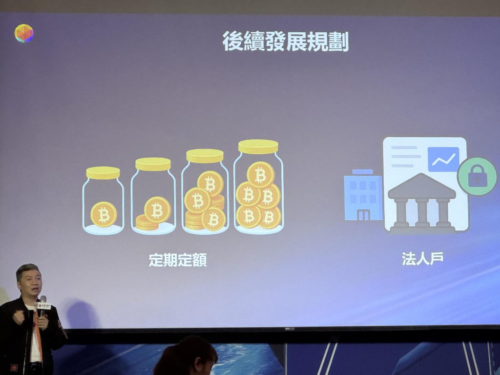 他跟我們說,是看到我們的上市記者會後,馬上去辦了一隻台灣大哥大的門號,以及去富邦銀行開戶,整體KYC流程跑了一個禮拜吧,並且說他其實很想投資比特幣,但過去沒有太多讓他放心的管道。